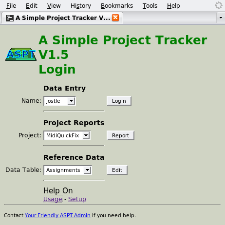 A Simple Project Tracker (ASPT) for tracking progress on projects against